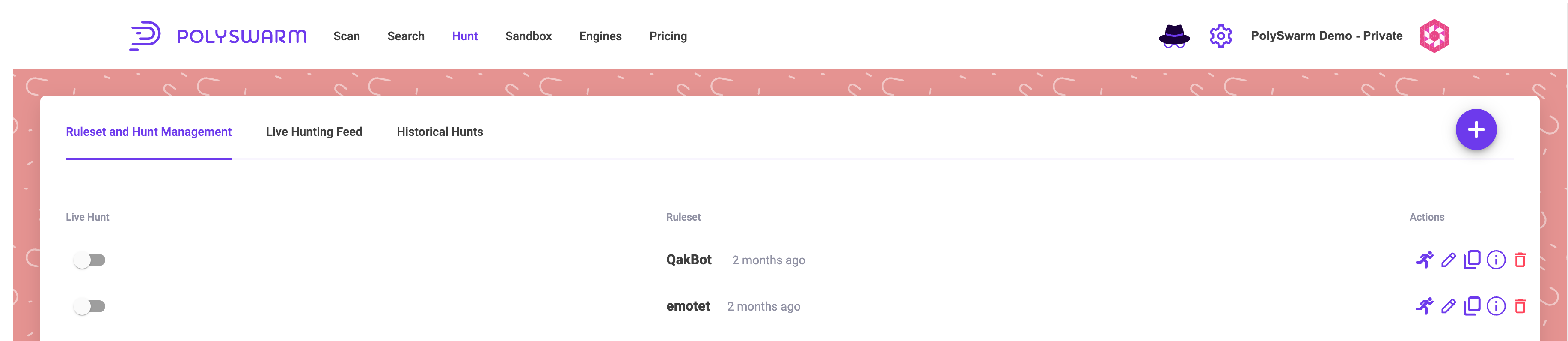 | Live Hunt | Live Hunt matches on samples in your Private and the Public community. |